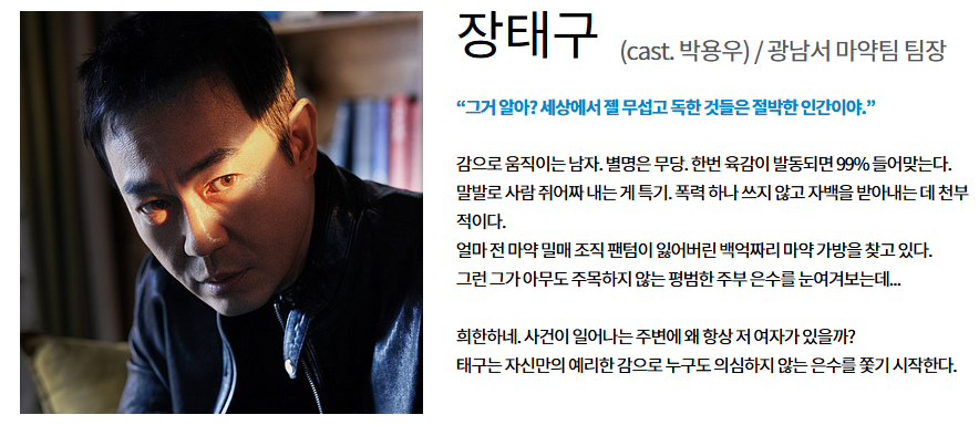 - 박용우 - 사건의 배후를 쫓는 형사로 등장, 극의 긴장감을 더합니다.