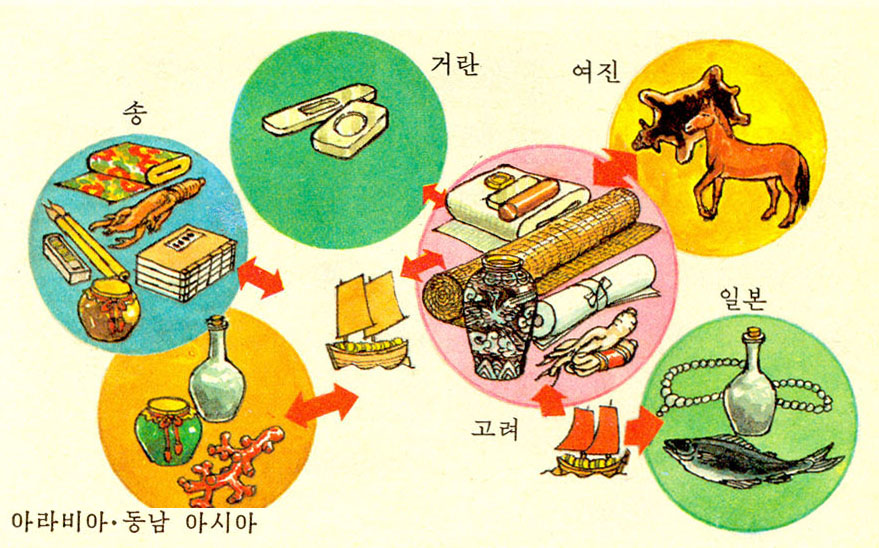 고려와 아라비아의 교류는 해상 실크로드를 통해 이루어졌습니다. 8세기부터 14세기까지, 페르시아와 아라비아 상인들은 인도양과 남중국해를 거쳐 한반도 서해의 국제무역항 벽란도에 도달했습니다. 그들은 향신료, 유리제품, 보석, 유황, 사탕수수 등을 실어왔고, 대신 고려는 청자, 금속 공예품, 인삼, 직물, 인형 장신구 등을 수출했습니다. 이렇게 고려는 아라비아를 포함한 이슬람 세계와 실질적인 무역 관계를 유지했습니다.